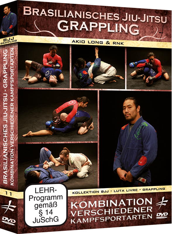 Akio LONG & RNK bieten ihnen 23 Situationen und Kampfkombinationen, sowohl für praktizierende Anfänger als auch für Fortgeschrittene im brasilianischen Jiu Jitsu, Grappling und Pancrace.