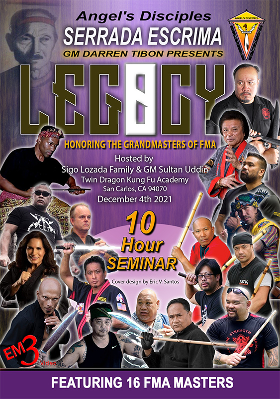 Legacy 8 is a part of the on going Filipino Martial Arts series that began in Stockton CA (2013) by Grandmaster Darren Tibon (Angel's Disciples) honoring the early grandmasters of FMA.